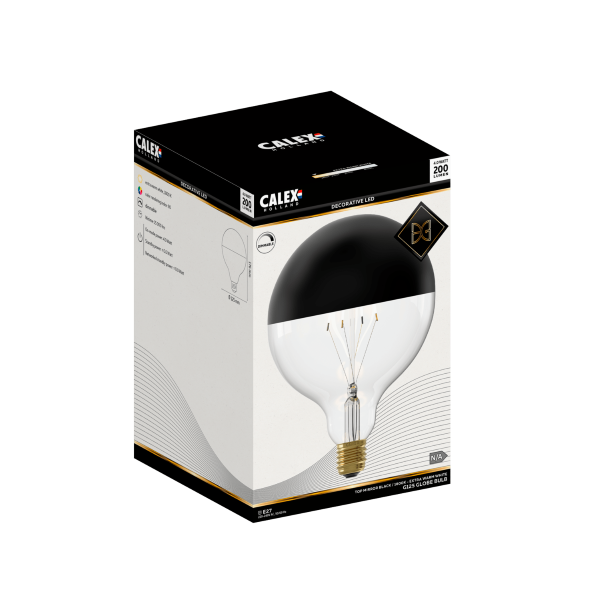 Deze globelamp is met zijn zwarte spiegelende kop een echte blikvanger. De lamp beschikt over de kopspiegel techniek, hierdoor wordt het licht door middel van een spiegelende laag weer naar boven gekaatst wat zorgt voor minder direct licht. De kopspiegel past bij elk interieur. Daarnaast is dit type dimbaar en gaat het tot wel 20.000 uur mee.