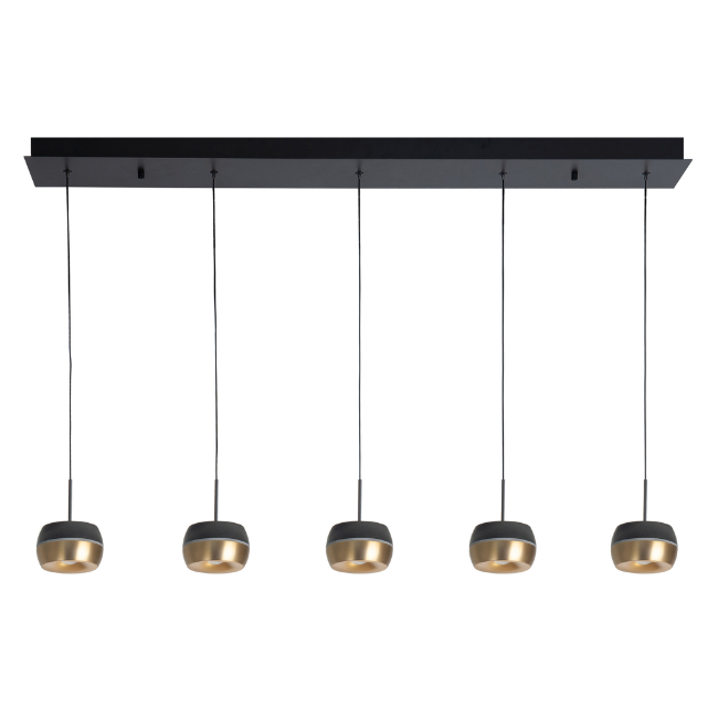 De Hanglamp Nova 5-lichts zwart goud is niet alleen een functionele lichtbron, maar ook een decoratief element dat uw interieur naar een hoger niveau tilt. Laat uw huis stralen met deze prachtige hanglamp en geniet van de complimenten van uw gasten. Wacht niet langer en geef uw ruimte de upgrade die het verdient!