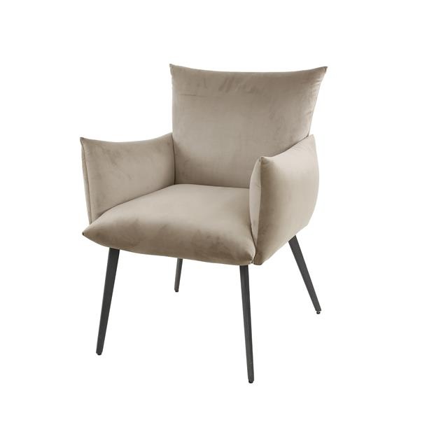 De licht gebogen rugleuning en zachte armleuningen bieden een comfortabele ondersteuning tijdens lange diners of gezellige avonden aan tafel. Dankzij de hoogwaardige vulling en het royale zitvlak voelt de stoel luxueus én ontspannen aan. De velours bekleding draagt bovendien bij aan een elegant geheel dat moeiteloos past bij diverse tafels en materialen.