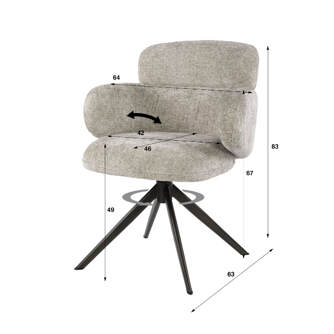 Het bronzen metalen onderstel is draaibaar en uitgerust met een auto-return functie, waardoor de stoel automatisch terugdraait naar zijn oorspronkelijke positie. Hierdoor blijft de eethoek netjes en rustig ogen. Dankzij het tijdloze ontwerp past deze stoel perfect in een retro, hotel chique of modern interieur.