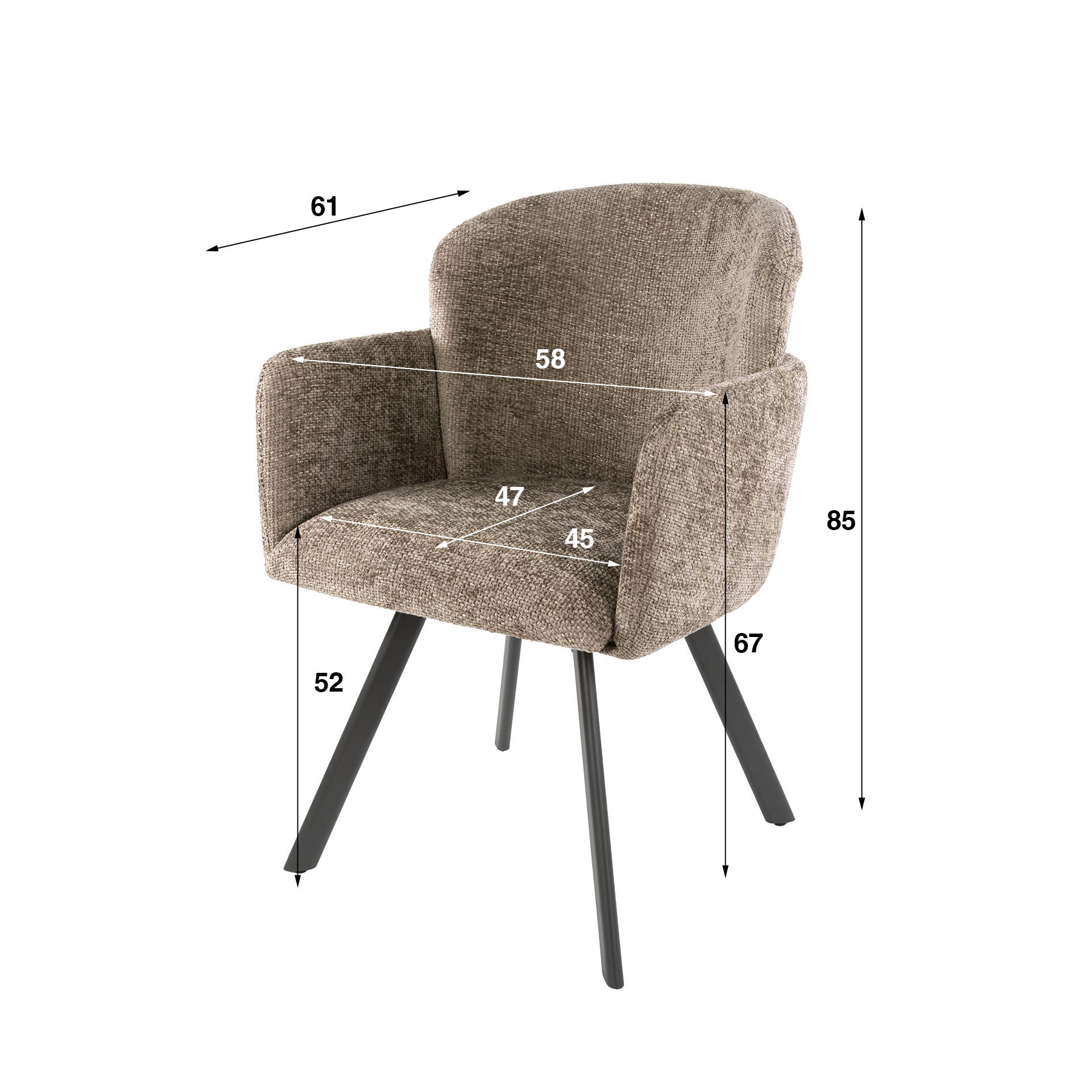 De Yara combineert stijl met functionaliteit. De zitting met pocketvering zorgt voor optimale ondersteuning en langdurig zitcomfort. Dankzij het draaibare onderstel schuif je eenvoudig aan tafel of draai je soepel mee in het gesprek. De ronde vormen, zachte stoffering en subtiel gevormde armleuningen zorgen voor een uitnodigend design dat klasse uitstraalt.