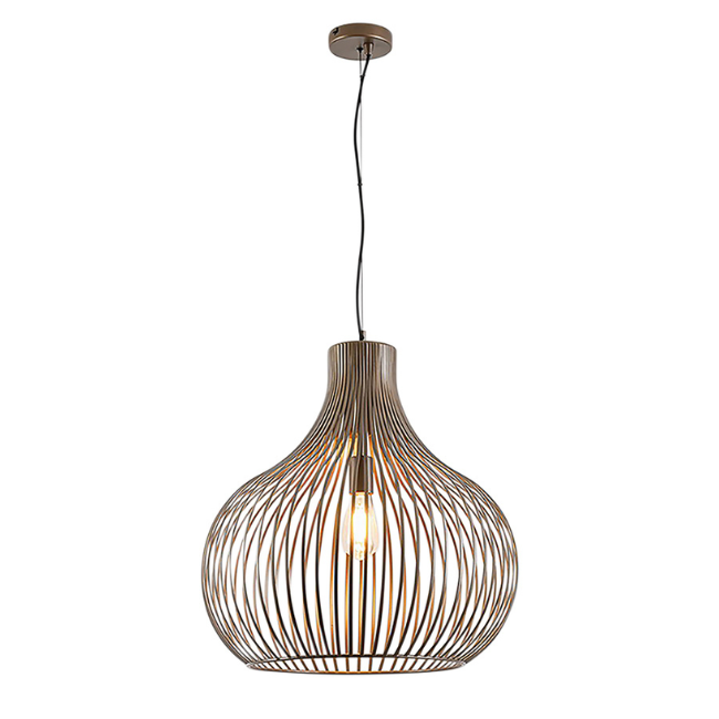 De hanglamp Aglio 1-lichts in brons is een echte statement piece in je interieur. Het opengewerkte design met vloeiende lijnen geeft de lamp een elegante en luchtige uitstraling. De warme bronskleur zorgt voor een stijlvolle en sfeervolle toevoeging die perfect past binnen een modern of industrieel interieur.