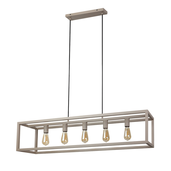 De hanglamp Esteso 5-lichts in crème brengt direct rust, warmte en stijl in je interieur. Het strakke metalen frame in een zachte, lichte tint geeft deze lamp een moderne industriële uitstraling met een verfijnde twist. Een echte blikvanger boven de eettafel of het kookeiland.