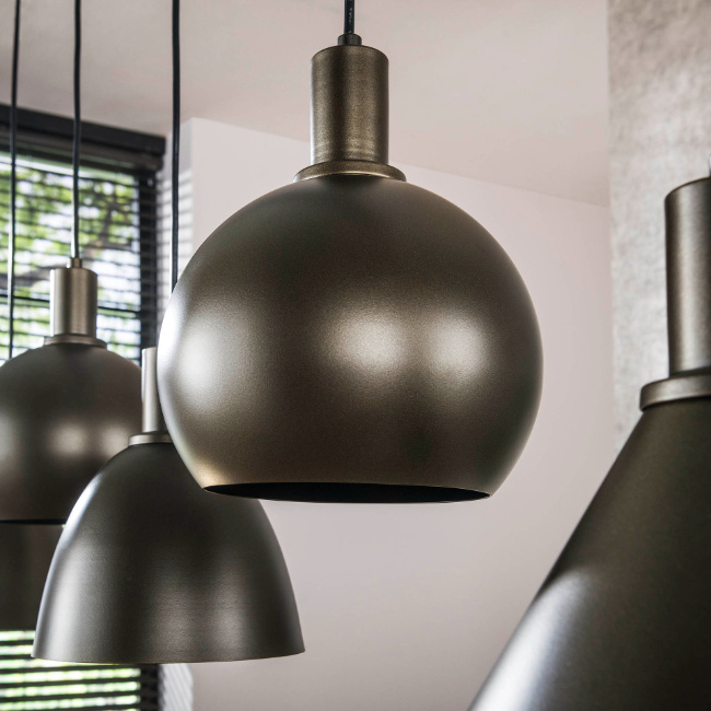 De diepe bruinzwarte kleur in combinatie met de goudkleurige binnenzijde van de kappen zorgt voor een luxe en sfeervolle lichtuitstraling. Perfect om je eettafel of kookeiland te verlichten en tegelijkertijd een gezellige ambiance te creëren.