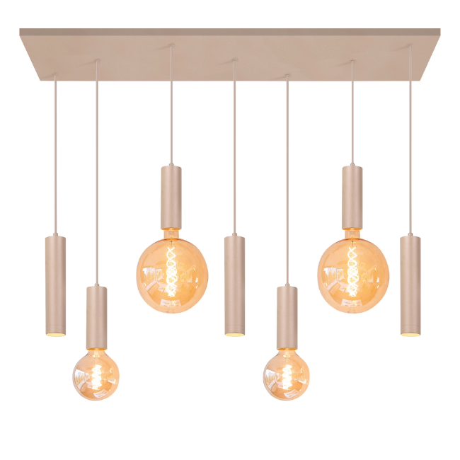 Hanglamp Locarno 7-lichts straalt rust, balans en verfijning uit. Het Scandinavische ontwerp wordt gekenmerkt door slanke lijnen, zachte vormen en een warme zandkleurige afwerking. Hierdoor past de lamp moeiteloos in moderne, Scandinavische en Japandi interieurs.