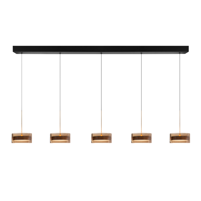 De Mini Enzo 5-lichts hanglamp in brons is een echte eyecatcher met een luxe en moderne uitstraling. De vijf elegante ringen hangen strak uitgelijnd aan een slanke plafondplaat en zorgen voor een krachtig maar stijlvol geheel.