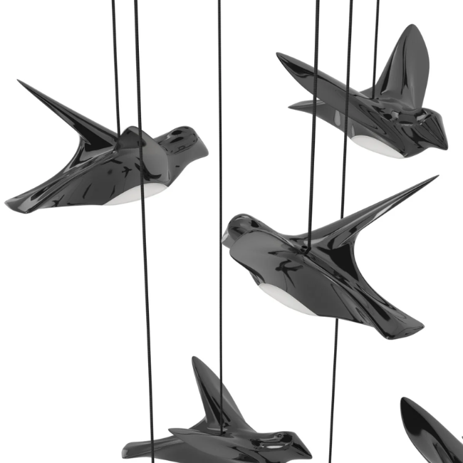 De design hanglamp Paratebueno 17-lichts van Eglo STARS OF LIGHT is een indrukwekkende blikvanger met een speels en elegant karakter. De zwarte vogeltjes lijken te zweven aan fijne kabels en creëren een dynamisch en artistiek effect. Perfect als statement piece in een vide, hoge hal of ruime woonkamer.