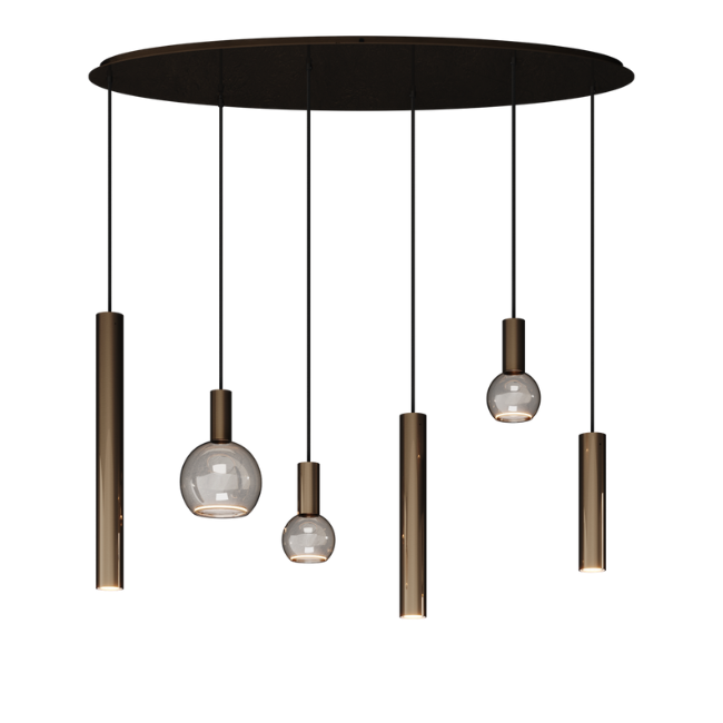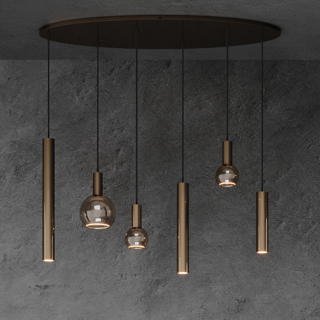 De Riva 6-lichts hanglamp van het merk ZTAHL is een stijlvolle combinatie van modern design en industriële charme. Deze ovale hanglamp is uitgevoerd in een warme Platinum kleurige staalafwerking en bestaat uit zes pendels: drie voorzien van cilindervormige GU10 kokers en drie met elegante E27 fittingen voor glazen Segula lichtbronnen. De afwisseling in vormen en hoogtes zorgt voor een speels en sfeervol geheel.