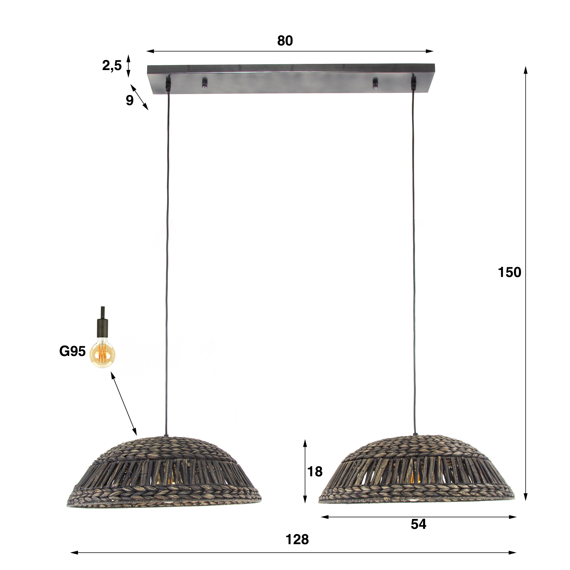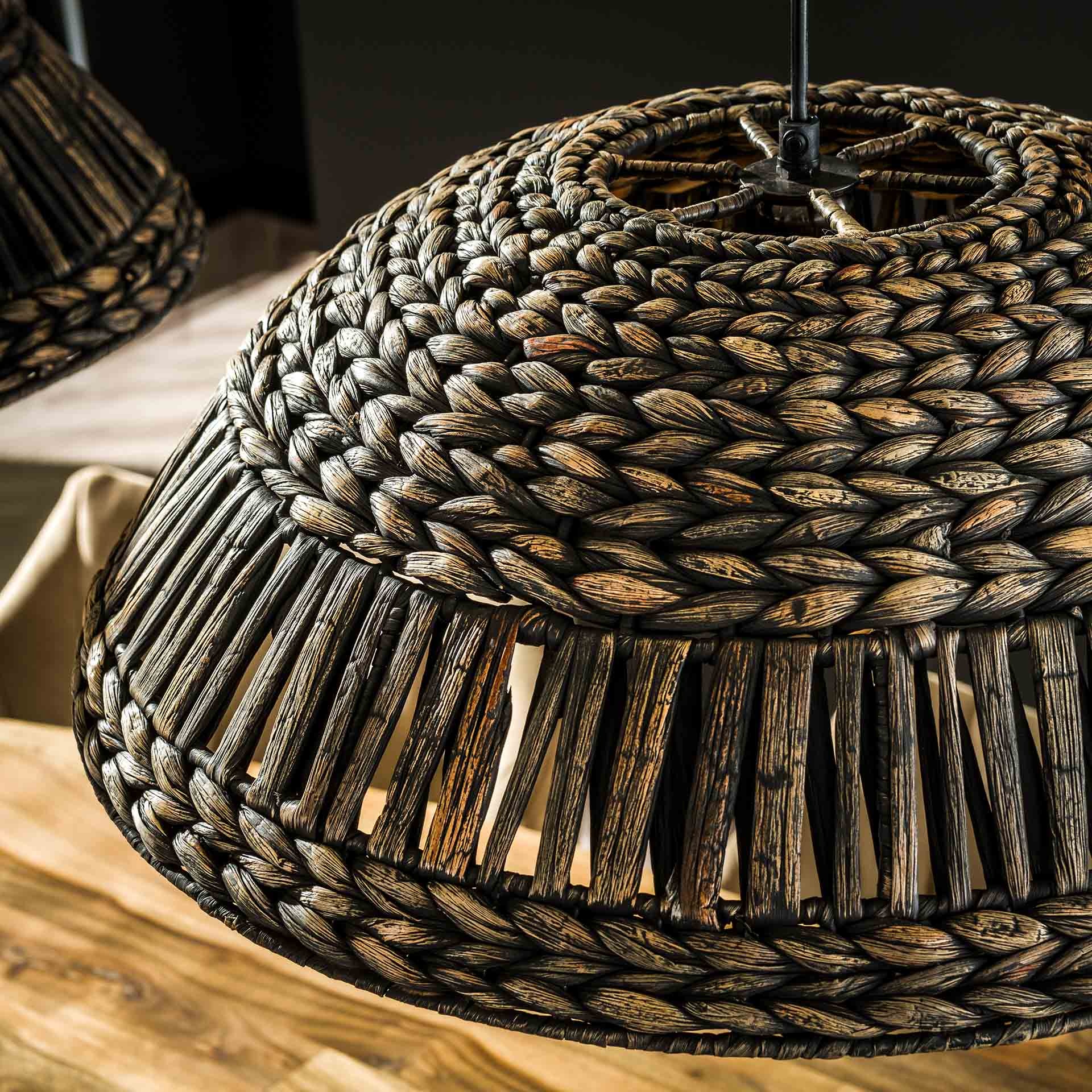 De Trenzando hanglamp combineert industrieel design met ambachtelijk gevlochten details. De twee royale dome-kappen zijn afgewerkt in een stoere zwart-nikkel tint en zorgen voor een unieke mix van robuustheid en verfijning. Dankzij het open gevlochten patroon ontstaat een speels lichteffect dat direct sfeer brengt in de ruimte.