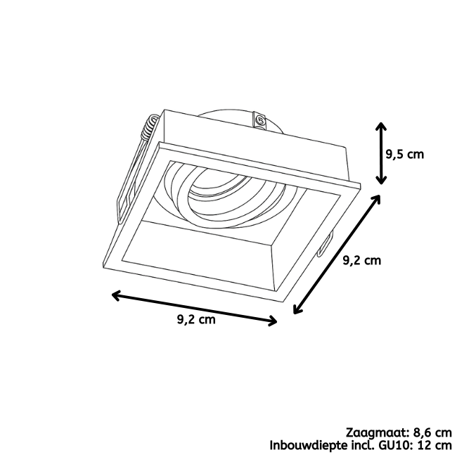 Met een vierkante inbouwmaat van 85x85 mm en een inbouwdiepte van 95 mm is de Rex compact maar krachtig. Door de IP20-classificatie is deze spot alleen geschikt voor droge ruimtes zoals de woonkamer, hal of keuken. Voor gebruik in vochtige ruimtes zoals de badkamer is dit model niet geschikt.