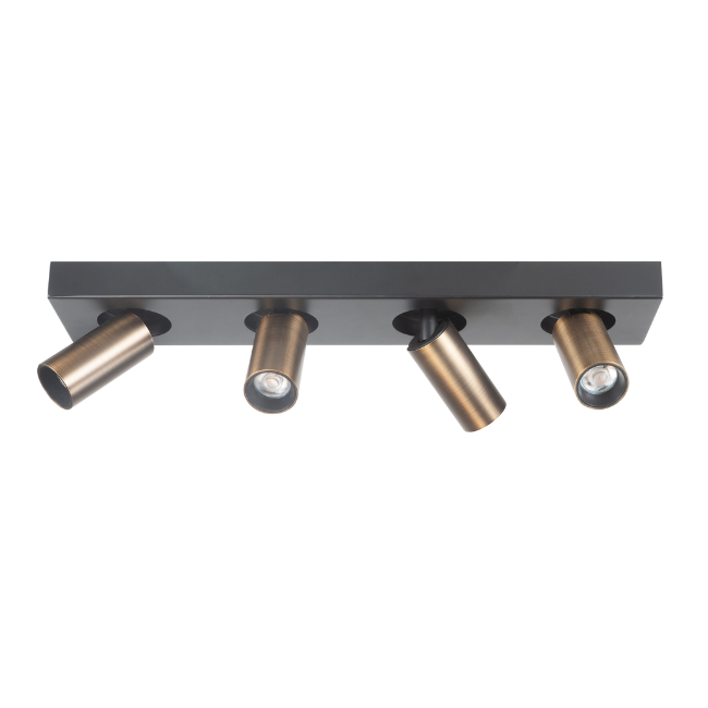 De Eliano 4-lichts opbouwspot in zwart/brons is een verfijnde toevoeging aan elk interieur waarin sfeer en stijl samenkomen. De combinatie van de matzwarte basis met de warme, geborstelde bronzen spots geeft deze lamp een chique, hotelwaardige uitstraling. Het ontwerp is strak en modern, met een subtiele vintage twist dankzij de bronzen afwerking.