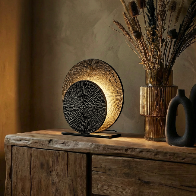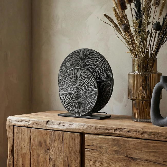 De moderne en industriële tafellamp Altin Small is ontworpen met twee schalen die een aangenaam lichteffect creëren. Dankzij deze slimme constructie hoef je niet rechtstreeks in de lichtbron te kijken, terwijl de ruimte toch wordt gevuld met zacht en sfeervol licht.