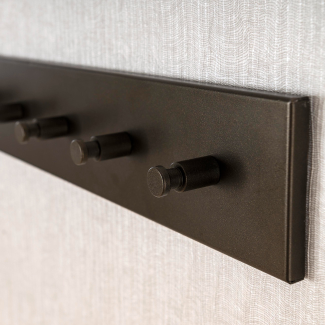 De kleur drift brown een warme mix van brons en donkerbruin geeft de kapstok een luxe, modern-industriële uitstraling. Deze tint combineert perfect met hout, betonlook en neutrale interieurtinten. De stevige metalen plaat zorgt voor stabiliteit en is eenvoudig aan de muur te bevestigen.