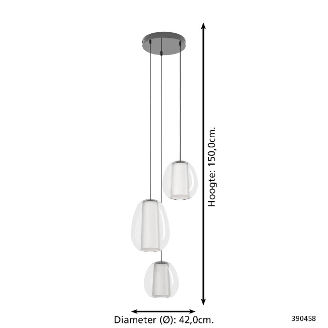 De Menorca 3-lichts hanglamp combineert elegantie en innovatie in één modern design. De drie glazen kappen hangen op verschillende hoogtes voor een speels en stijlvol effect. Dankzij het minimalistische ontwerp past deze lamp moeiteloos in zowel moderne als Scandinavische interieurs.