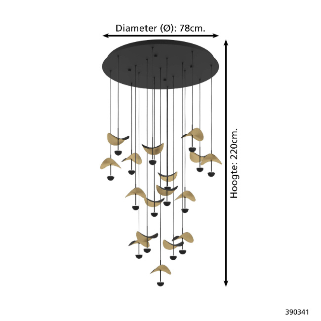 De Dracera 17-lichts ronde hanglamp is een imposante verschijning die elke ruimte een luxe uitstraling geeft. De combinatie van de zwart-gouden kappen en geïntegreerde LED-verlichting zorgt voor een warme, sfeervolle gloed die perfect is voor hoge plafonds of grote open ruimtes. De individuele lichtpunten zijn elegant verdeeld, wat zorgt voor een prachtig lichtspel in de kamer.