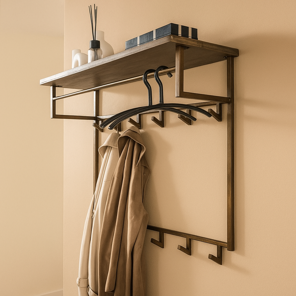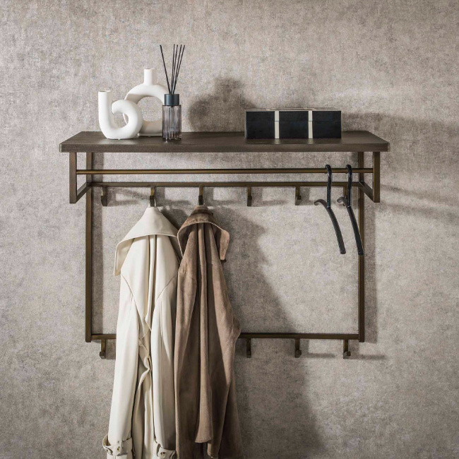 Het robuuste ontwerp van Tess wordt versterkt door het duurzame materiaal en de zorgvuldig afgewerkte details. De bovenste plank biedt extra opbergruimte voor decoratieve accessoires, sleutels of hoeden, terwijl de geïntegreerde roede geschikt is voor kledinghangers. Dankzij het tijdloze ontwerp en de functionele opzet is deze kapstok een praktische én esthetische toevoeging aan je interieur.