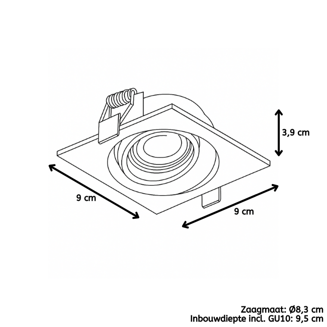| Inbouwmaten | Zaagmaat: Ø8,3 cm Inbouwdiepte incl. GU10: 9,5 cm |