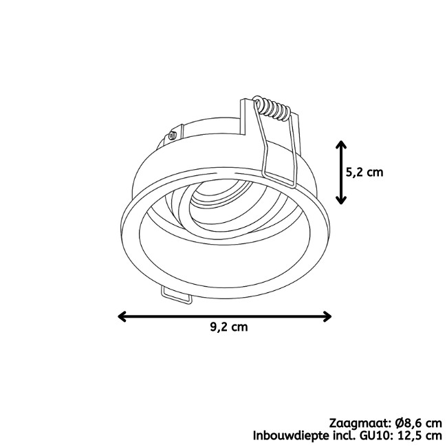 | Inbouwmaten | Zaagmaat: Ø8,6 cm Inbouwdiepte incl. GU10: 12,5 cm |