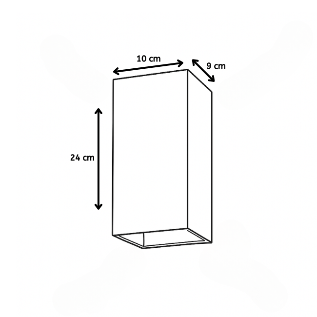 Afmetingen: 9 cm breed x 10 cm diep x 24 cm hoog