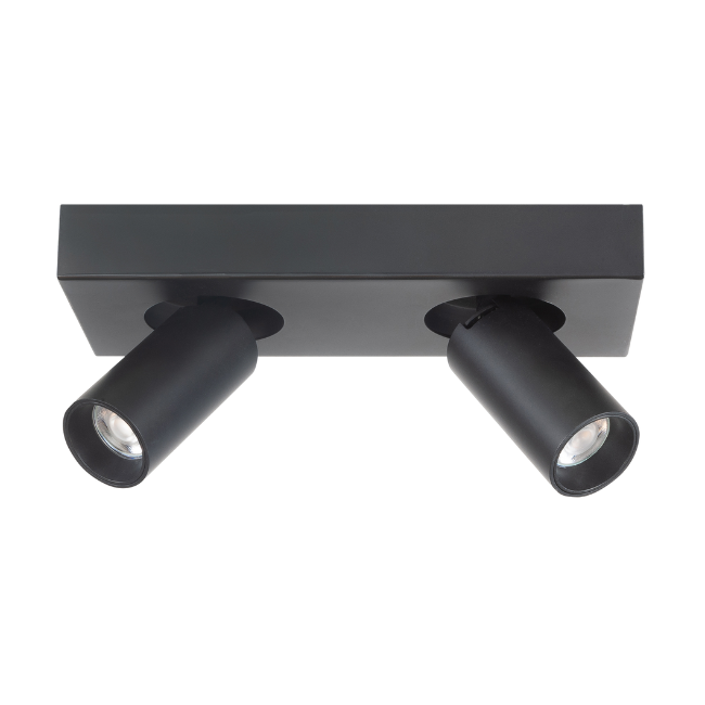Geef je interieur een moderne en functionele boost met de Eliano 2-lichts opbouwspot in zwart. Het armatuur heeft een strakke, rechthoekige plafondplaat van 24,1 cm lang en 10,2 cm breed, met daarop twee draaibare spotjes. De minimalistische afwerking in volledig zwart maakt deze lamp bijzonder veelzijdig – perfect voor keukens, gangen of werkkamers.