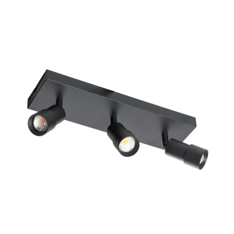 De ETH Liam plafondspot 3-lichts is een moderne opbouwspot met een strak, rechthoekig plafondplateau en drie verstelbare lichtpunten. Dankzij het minimalistische ontwerp past deze spot perfect in moderne, Scandinavische en industriële interieurs, zoals de woonkamer, keuken of hal.