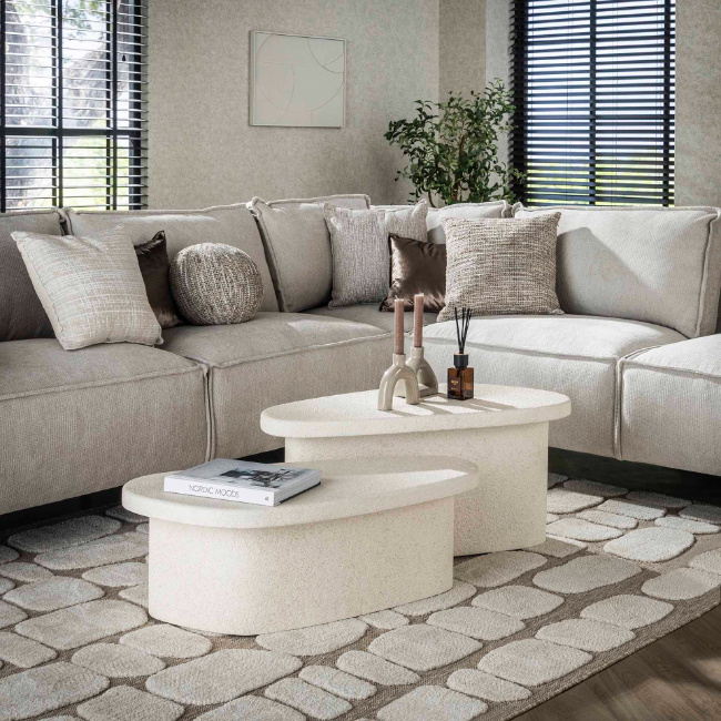 De Octo salontafel 2-set brengt een moderne en zachte uitstraling in je woonkamer dankzij de organische vormen en de elegante witte afwerking. De afgeronde lijnen creëren een rustig en harmonieus geheel, perfect passend bij een modern, Scandinavisch of Japandi interieur. De speelse vormgeving zorgt voor een luchtig effect, waardoor de set ook in kleinere ruimtes mooi tot zijn recht komt.