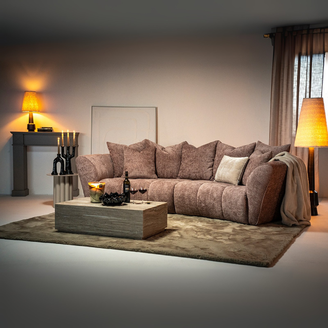 Liselotte combineert allure en comfort in één. De diepe zit van 66 cm en zithoogte van 42 cm nodigen je uit om heerlijk te ontspannen. Dankzij de zachte ronde vormen, stikselaccenten en losse rugkussens krijgt je woonkamer een verfijnde, warme sfeer.