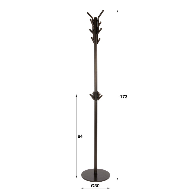 De rond gevormde buizen zorgen voor een vloeiend en minimalistisch ontwerp, waardoor de kapstok zowel praktisch als stijlvol is. Dankzij de twaalf haken is er voldoende ruimte voor het ophangen van jassen, tassen en accessoires.