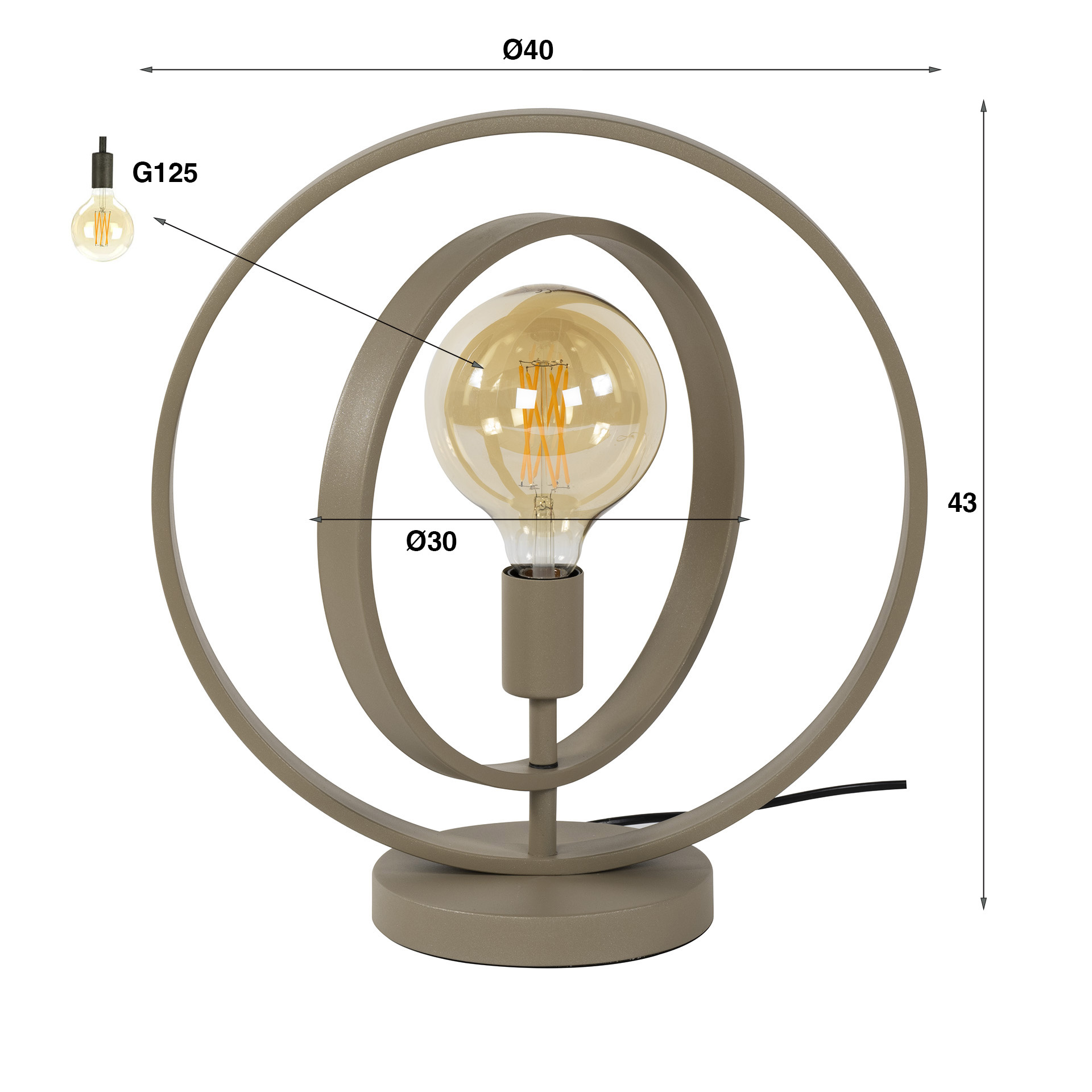 De Ozon tafellamp 1-lichts in beige straalt moderne elegantie uit met een vleugje Scandinavische rust. De open metalen ringen vormen samen een luchtig en dynamisch design dat het licht prachtig verspreidt. Dankzij de warme gloed van de zichtbare lichtbron ontstaat een sfeervol spel van schaduw en glans, ideaal voor op een dressoir, sidetable of nachtkastje.